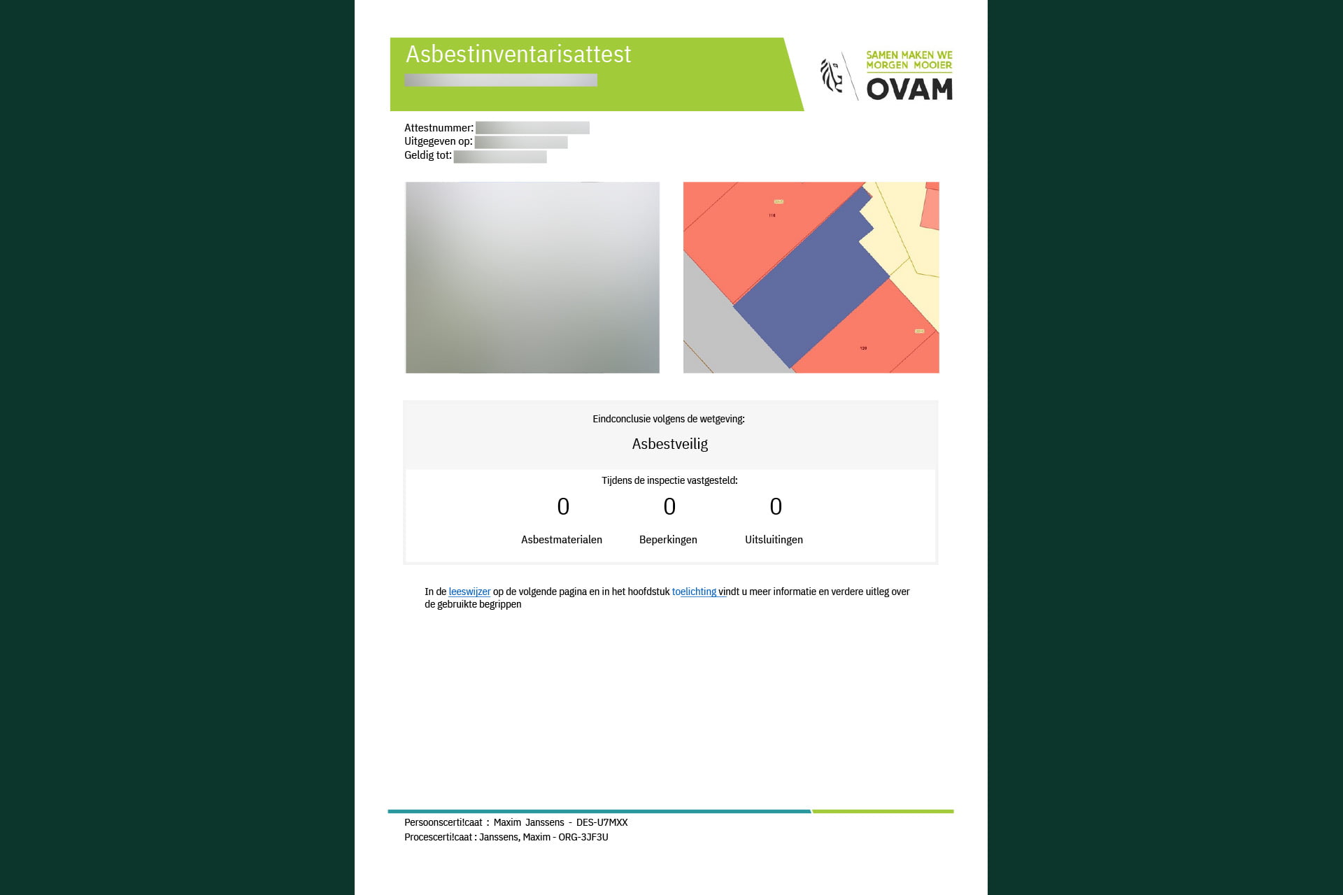 Oplevering van asbestattest